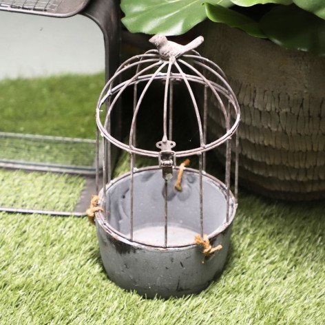 Cage bi-matière avec Oiseau en métal et ciment brut Ø.16 x Ht.31 cm