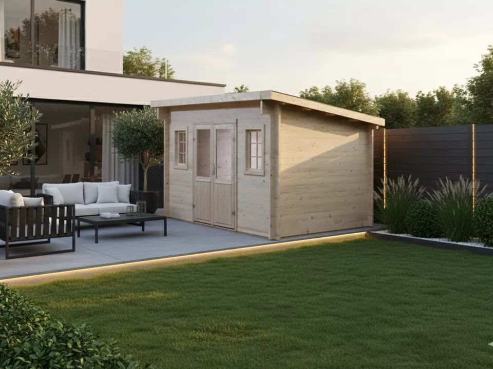 Abri FALAISE Épicéa massif – Madriers 42 mm Monopente, BAC ACIER
