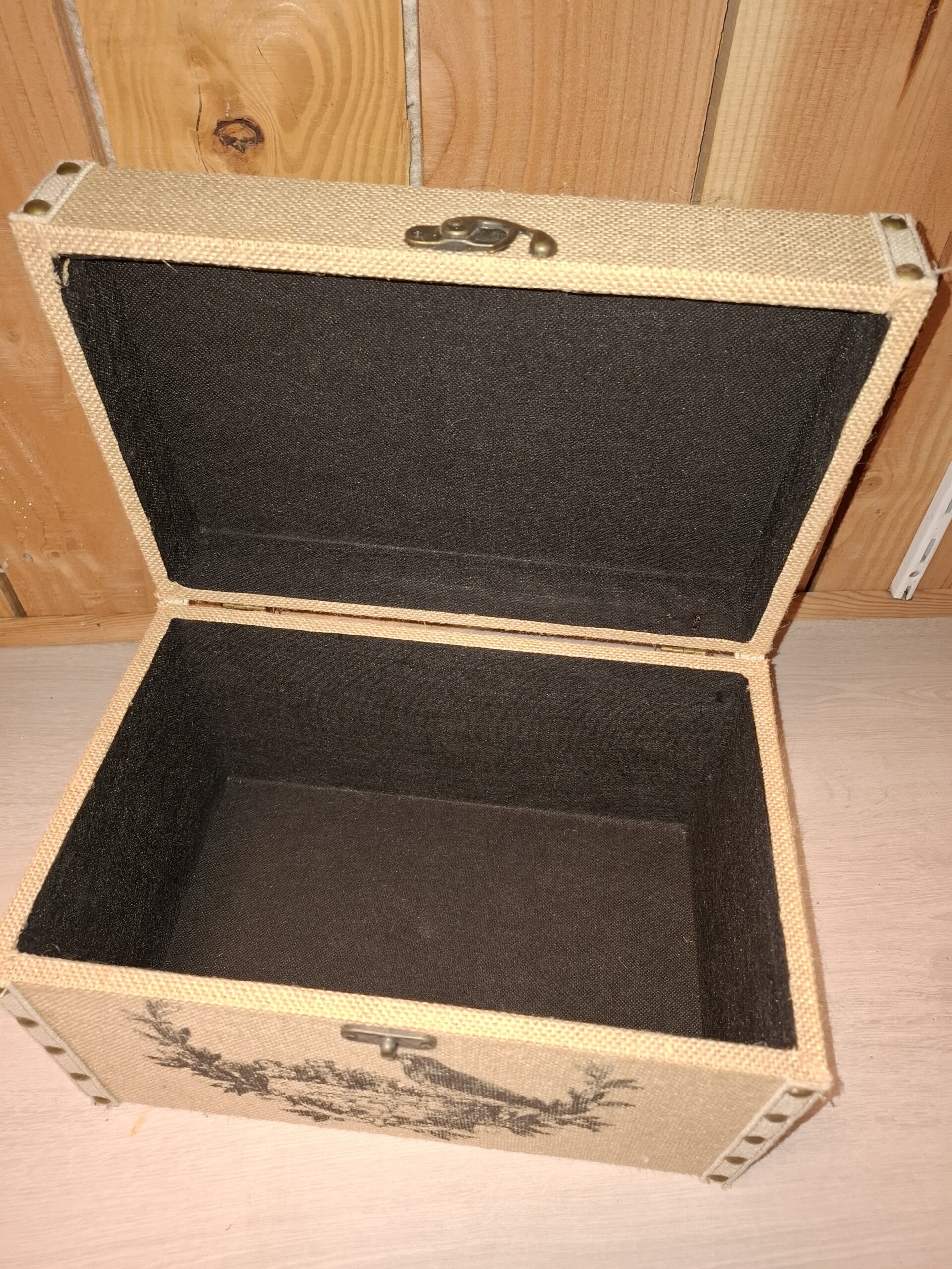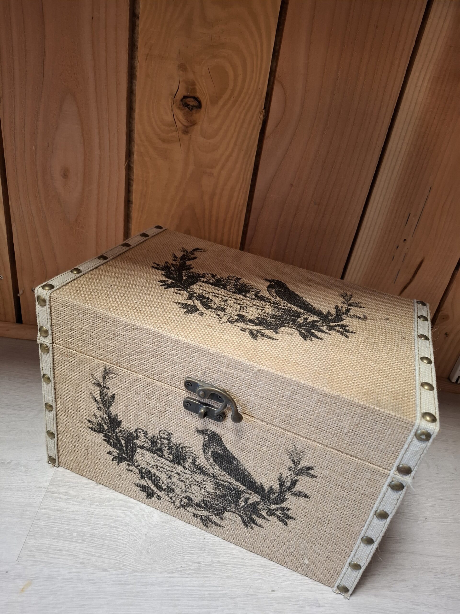 Boîte Coffret Malle Coffre en Bois Toile de Jute Oiseaux 34x22x22 cm