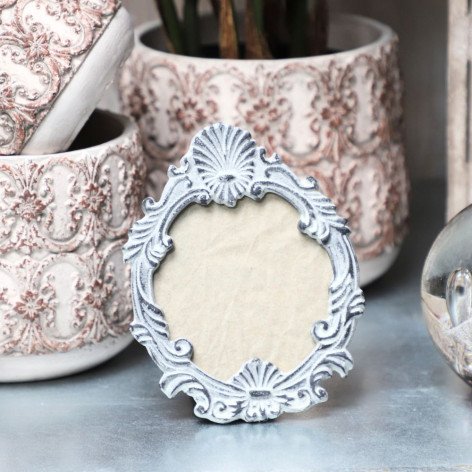 Cadre photo ovale à poser en fonte grise L.12 x Ht.16 cm